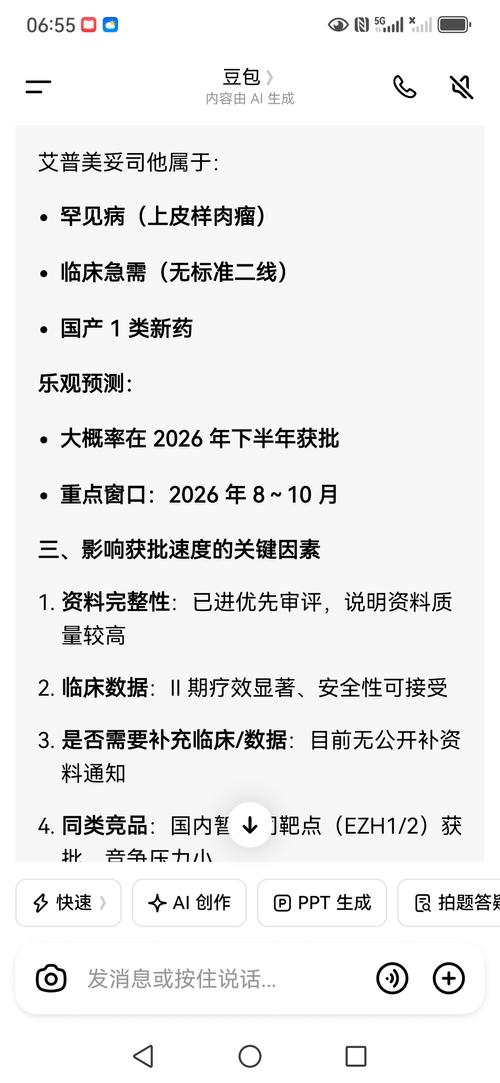 重磅管线冲刺(艾普美妥司他片,HH2853) 4月3日(最新):艾普美妥司他片(HH2853)上市申请(NDA)获NMPA受理。 适应症:上皮样肉瘤(ES)。 地位:国产首款EZH1/2双靶点抑制剂,2月25日已纳入优先审评。 竞争格局:主要竞品和黄医药的达唯珂(Tazemetostat)于3月宣布在中国撤市。