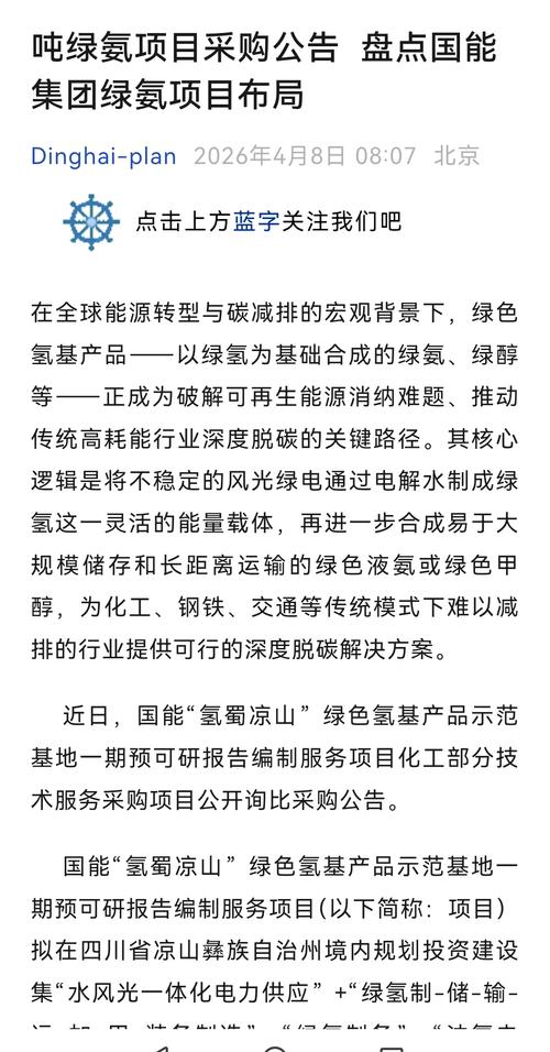 $西昌电力(SH600505)$ 国能“氢蜀凉山”基地开启采购,盘点分析国家能源集团绿氨棋局 氢专委秘书处氢专委秘书处氢能产业材料创新与应用2026年4月7日09:46上海听全文在小说阅读器读本章去阅读在小说阅读器中沉浸阅读点击蓝字关注我们国家能源集团作为我国能源转型的“国家队”,依托覆盖宁夏、内蒙古、河北、山东、四川、新疆、甘肃等风光富集区的资源禀赋,系统布局了绿氢耦合煤制氨、风光绿电制氢+合成...