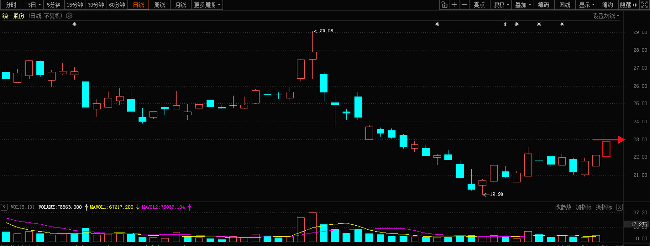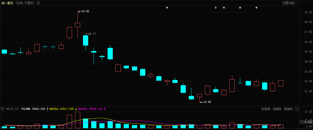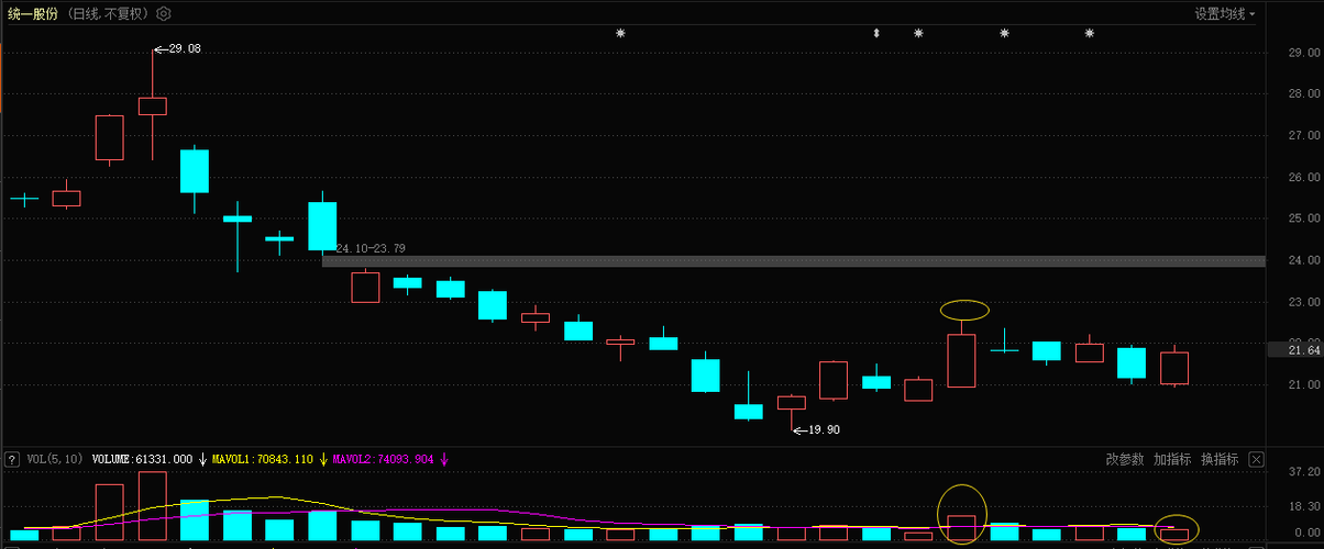 $统一股份(SH600506)$今天必冲过22,2个星期到内到达24-25,加油。