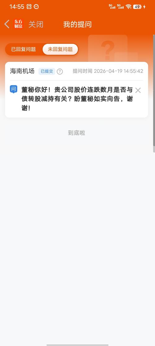 【问】在海南自贸港封关运作的大环境下面,贵司股价跌跌不休,是贵司业务出了什么问题吗?2026年贵司会有什么动作来围绕海南封关开展业务呀?【答】海南机场:尊敬的投资者:您好!我们非常理解您对公司股价走势的关切,二级市场股票价格既取决于公司经营业绩等内在因素,也受宏观经济环境、行业趋势、市场情绪等外在因素影响。目前公司生产经营一切正常,且不存在应披露而未披露的重大事项。2026年是海南自由贸易港全岛封关运作后首个完整年度,也是“十五五”规划开局之年。公司将紧密围绕创建世界一流机场运营集团的战略目标,聚力推动“做强航空生态链、延伸临空产业链、补全商管供应链”的“三链”协同发展新模式,提升资产运营效率与价值创造能力,围绕效益优先,以改革创新为战略实施路径,为海南自贸港建设发展提供有力支撑。具体经营规划请参阅公司即将披露的2025年度定期报告。感谢您对公司的关注!