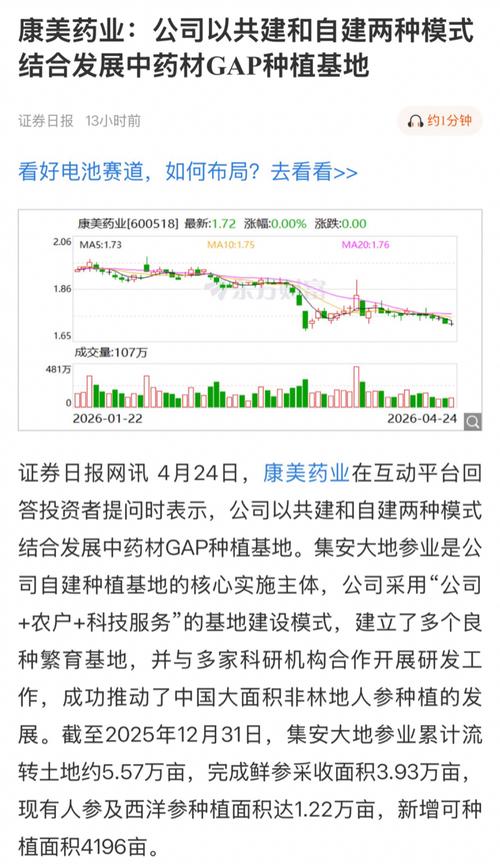资讯 康美药业:公司以共建和自建两种模式结合发展中药材GAP种植基地