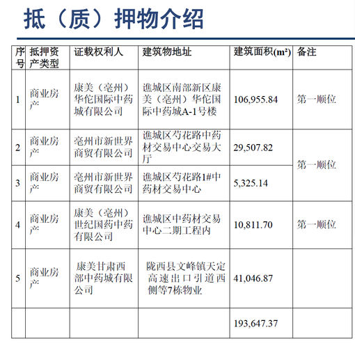 2026.4.8重新整理完善渤海信托资产包情况的图片版和文字版 名称1康美药业股份有限公司债权项目 1,亳州市谯城区南部新区康美(亳州)华佗国际中药城A-1号楼的不动产【权属证号:皖(2019)亳州市不动产权第0013803号】 曾于2024年9月15日安排拍卖,后被撤回。待拍(未进入执行程序)待拍 2,位于亳州市谯城区芍花路中药材交易中心交易大厅的不动产【权属证号:皖(2018)亳州市不动产权第...
