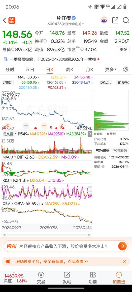 截至2026年4月14日,康美药业(600518)尚未发布官方2025年度业绩预告,正式年报将于2026年4月18日披露。 一、已披露数据(官方) -2024年报(已出)-营收:51.89亿元 -归母净利润:857万元(盈利) -扣非净利润:-5.33亿元(主业亏损) -净资产:72.09亿元(为正) -2025三季报(已出)-营收:39.60亿元(同比+2.22%) -归母净利润:1308万元(...