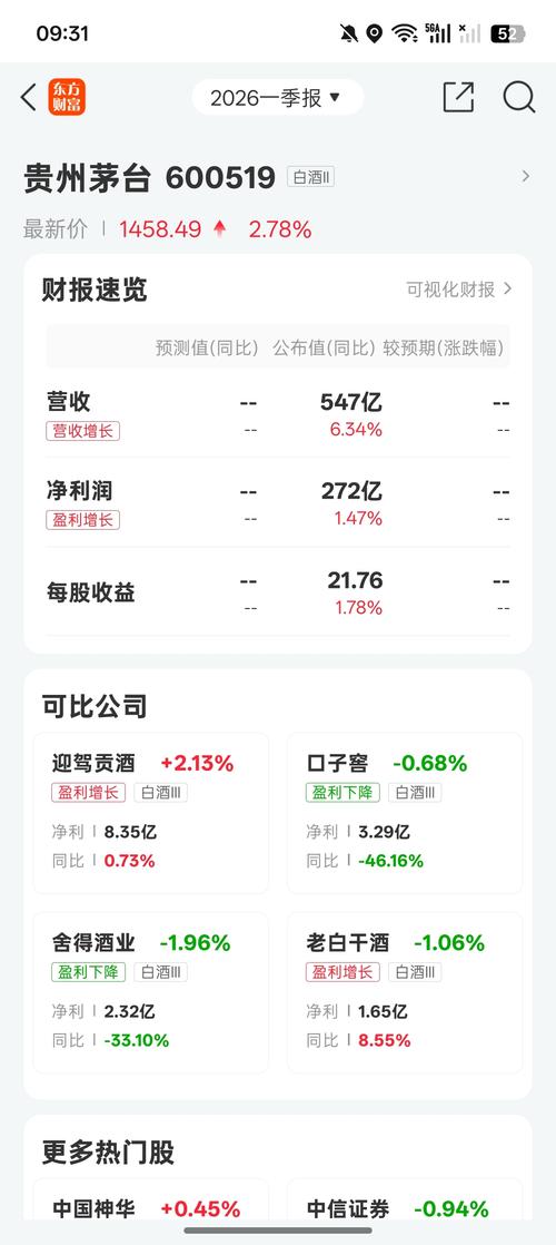 资讯 贵州茅台:一季度净利润272亿元 同比增长1.47%
