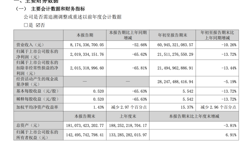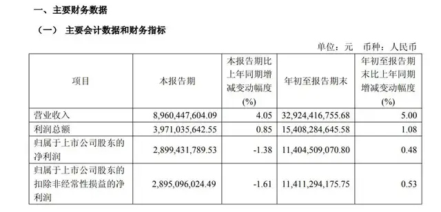ipo向善财经 更新于 今天 14:03 1984次浏览 “浓眉大眼”的贵州茅台,也卖不动了? $寒武纪-U(SH688256)$$古井贡酒(SZ000596)$$贵州茅台(SH600519)$ 10月29日,贵州茅台公布今年三季度业绩,在白酒行业深度调整期,茅台也面临“卖不动”的局面。 天眼查APP显示,贵州茅台第三季度营收为390.64亿元,同比增长0.56%;净利润为192.24亿元,同比增长0.48%。 销售数据方面,茅台酒销售约为349.2亿元,同比增长7%,系列酒约... 2赞