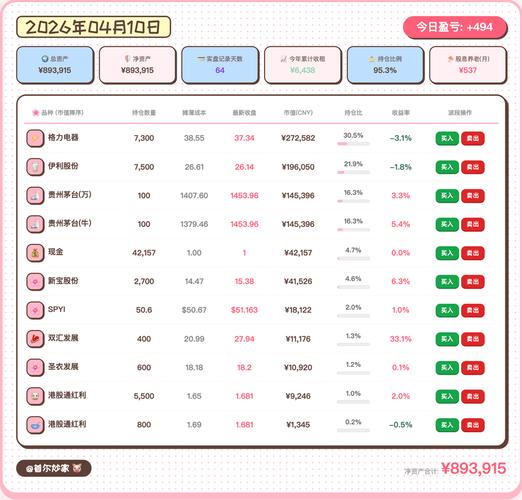 2026年04月10日,实盘第64天。今天小幅盈利,账户来到了89万附近。不过先说明一下,这里面有5万是新到账资金,不是市场赚出来的收益,别误会。 最近这段时间,说实话整体操作只能算中规中矩。组合还是以消费为主,在现在这种轮动特别快的行情里,其实是有点“吃力”的。你会很明显感觉到,市场在不同板块之间来回切换,有的在涨,有的在调整,而自己这套偏稳的组合,很多时候就是“慢半拍”。 有时候也会动摇。看着...