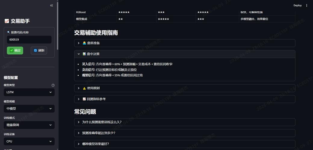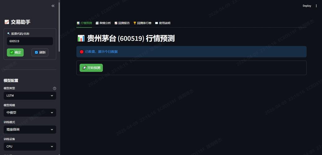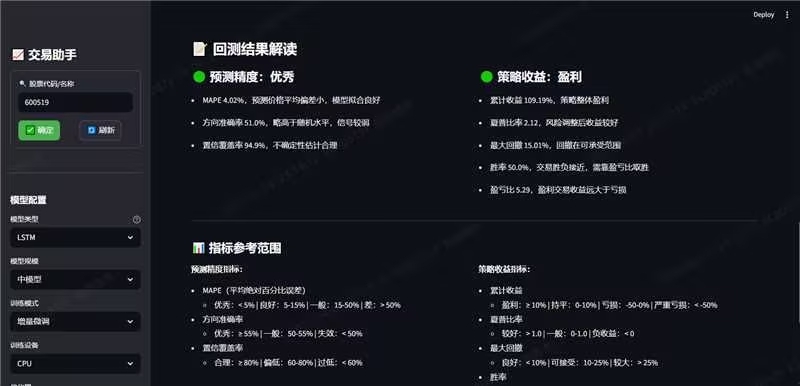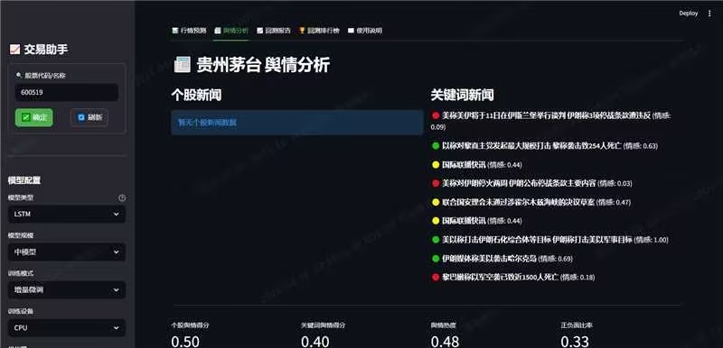 $贵州茅台(SH600519)$$首开股份(SH600376)$$工业富联(SH601138)$最近被A股虐得很惨,套得死死的,没法操作,闲来无事,疯狂查阅资料,开发了一个迷你版量化交易助手,具有以下功能: