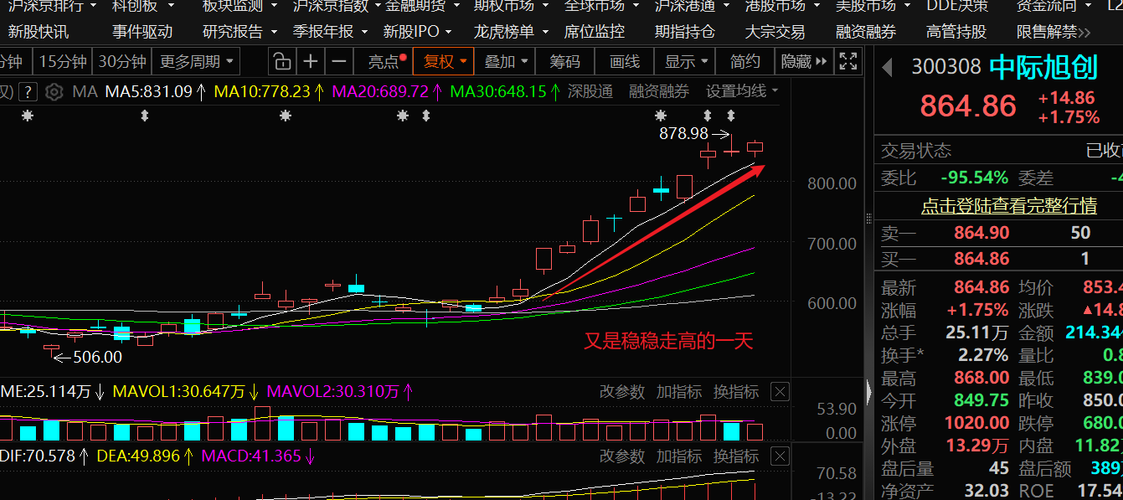 中际旭创涨1.75%主升浪延续,璞泰来放量走强,茅台企稳!中线不动摇