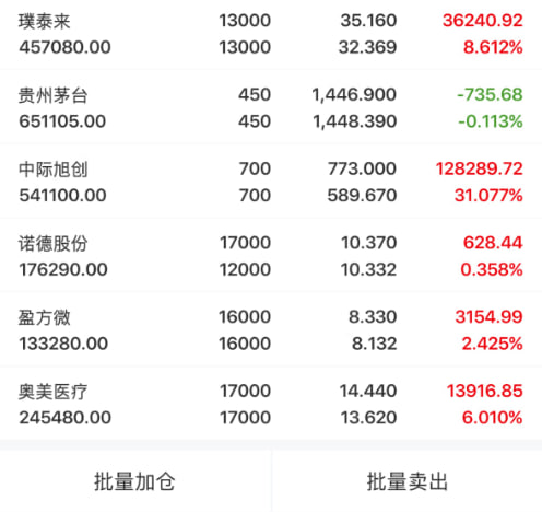 兄弟姐妹们下午好!我是南山!今天市场放量大涨、全线普涨,沪指站稳4000点,创业板再创阶段新高,量价齐升、趋势走强,AI算力、半导体、锂电全面爆发,咱们中线标的全线走强,完全印证长期抱优质的策略。南山中线组合全线无操作,稳稳躺赢!越是大行情,越能看出守优质、抱主线的威力,心情真的又稳又爽! 今日中线标的全线无操作,下面讲讲每一只逻辑(个人实盘记录,不构成投资建议) $贵州茅台(SH600519)$...