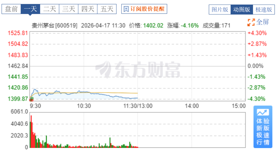 资讯 沪指低开,贵州茅台盘初跌超4%,2025年报悲观预期或充分计入