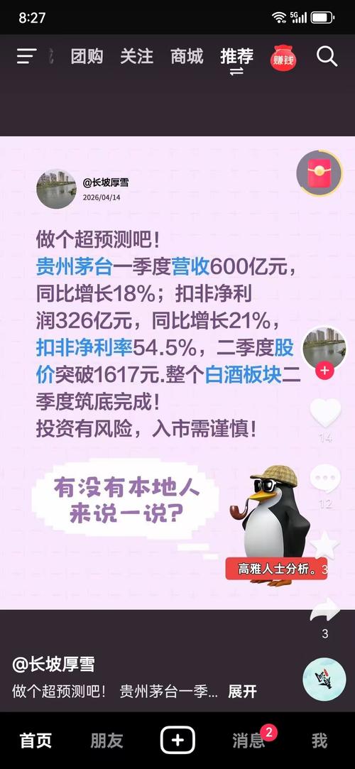 $贵州茅台(SH600519)$$金徽酒(SH603919)$ 明天晚上茅台出年报业绩,重头戏,估计是符合预期的,是在预期内的。 明天晚上除了贵州茅台的年报外,还有金徽酒的一季度业绩。 贵州茅台一季度归母净利润增速,券商预测范围2-8%; 金徽酒一季度归母净利润增速,券商预测范围负10%到0%。