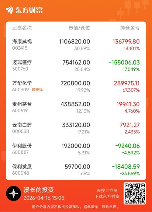 资产变动+1.72(+0.48%)余额361.80 年内实盘+13.53(+3.93%) 持仓盈亏+27.20 年内沪深300(+2.30%) 年内股息0(按收付实现制记录) 持有股票天数: 海康威视280天 迈瑞医疗531天年内股息+1457 万华化学274天 贵州茅台241天 云南白药262天年内股息+9498 伊利股份265天 保利发展239天 记录:今天晚上贵州茅台就要发年报,看能不能突破...