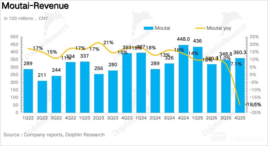 导读:茅台从“躺着赚钱”的舒适区走出,去直面渠道改革的阵痛、产品结构的优化和消费场景的重塑。 从高歌猛进到负增长,茅台的“金身”,破了。4月16日,贵州茅台交出了一份让所有人沉默的成绩单:全年营收1720.54亿元,同比下滑1.20%;归母净利润823.20亿元,同比下降4.53%。 这是2001年上市以来,茅台首次出现年度营收和净利润双双负增长。 更令人心惊的是第四季度:单季营收暴跌近20%,净...