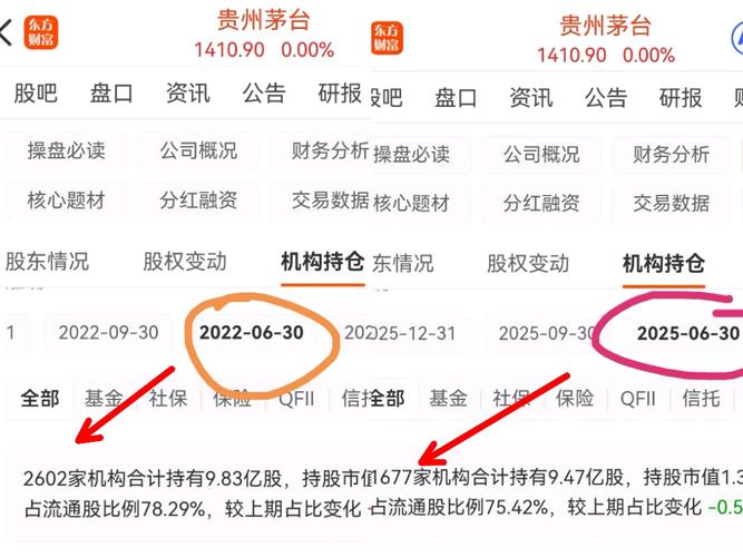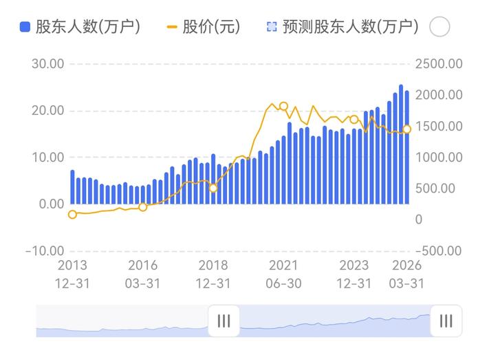机构抱团白马股:贵州茅台,还有多少家机构持有贵州茅台? 机构与散户数量对比,预测未来股价走势,这个因素是重要参考因素。 1.2022年6月持有贵州茅台的机构数量超过2600家,3年之后的2025年6月,减少到1600家,机构数量大幅度减少。 2.2016年,持有茅台股东4万左右,2026年暴涨到了24万!散户数量大幅度增加。 3.这表明机构把筹码抛给了散户!筹码不断稀释,至今散户数量没有明显减少的...