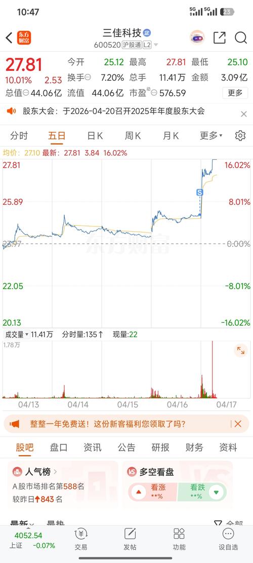 $三佳科技(SH600520)$这么点量都能封住单?看来要连板了