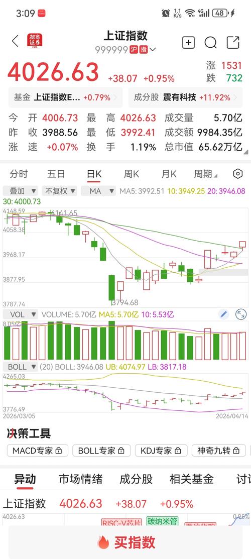 $江南高纤(SH600527)$今天大盘涨的不错,继续持股待涨,这货也可以拿,掉下来是可以接的,如果明天大盘调整一下再来接就更好,大盘已经收复4000,明天不知道会不会回踩4000,然后再接着涨。周线在没有放量之前,他大盘可能还会跌破4000,不过不要担心,周线量能起来了站稳了就强了。还是不能追高买,小心明天冲高回落。本周真的放量涨的,上周就该布局,既然知道大盘要放量大涨,明天江南他再调整可以接,...