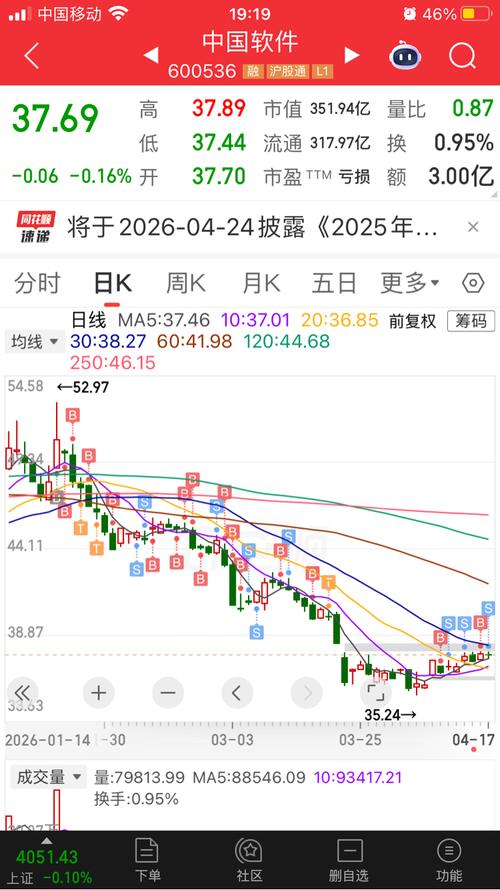 $中国软件(SH600536)$下周走势预测:冲击38.5然后在36.5-38.5之间震荡!大概率会下探36.5 下周策略:如果能冲上39清仓,37左右买回,否则做T
