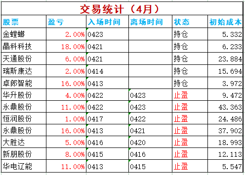 4.23 复盘:华升股份、金螳螂、晶科科技、天通股份、恒润股份、瑞斯康达
