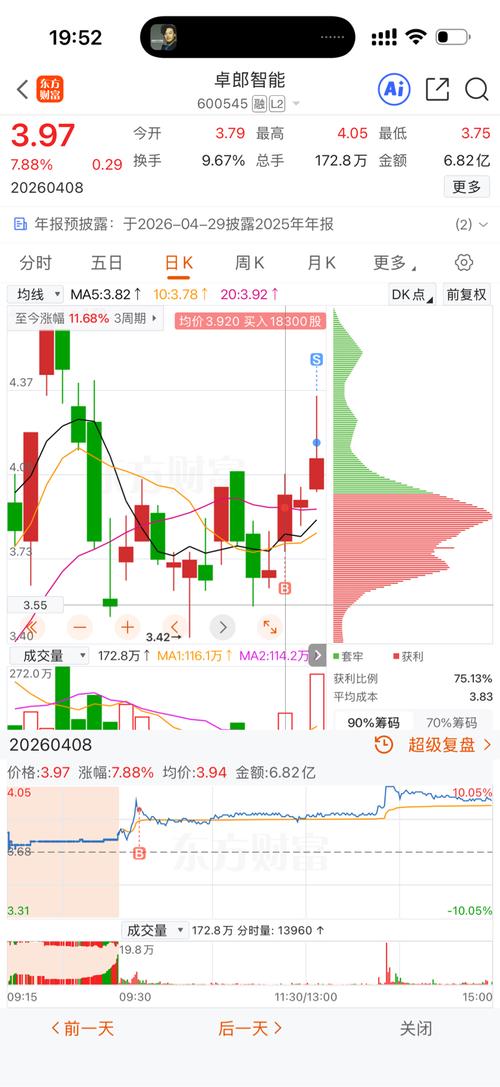 后期走势分析 $卓郎智能(SH600545)$智能装备+题材炒作,业绩亏损,估值虚高,短线资金驱动。 操作 持仓:3.95元不破可拿,4.4–4.6元分批止盈。 空仓:不追高,回踩3.8–3.9元企稳再考虑。 风险 题材退潮、业绩不及预期,止损3.7元。