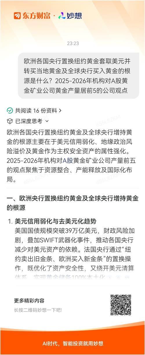 欧洲各国央行置换纽约黄金套取美元并转买当地黄金及全球央行买入黄金的根源?2025-2026年机构对A股黄金矿业公司黄金产量居前5的公司观点 $湖南黄金(SZ002155)$$山东黄金(SH600547)$$中金黄金(SH600489)$