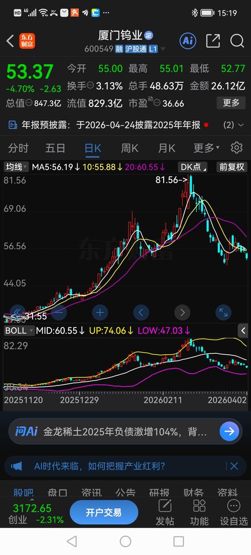厦门钨业投资者亏损比例90%,大盘成交量越来越少慢牛变慢熊了,融资资金抛压较大,股价可能考验50元支撑,企业基本面越来越好,很多企业提前预告一季报业绩,稳定投资者信心,厦门钨业应该注重市值管理。