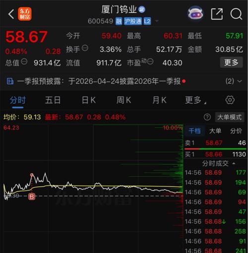 厦门钨业(600549)2026年一季报将于4月24日正式披露。鉴于同行中钨高新已交出了单季利润9.5亿、同比增长超250%的惊人答卷,行业的超高景气度已是不争的事实,厦门钨业的一季报同样非常值得期待。 不过,它一季报大概率会“迟到”,你需要多一点耐心: ·“迟到”原因:非强制披露:根据规则,公司地处沪市主板,一季度业绩预告并非强制要求。因此,未发预告不代表业绩不好,只是遵守了不同的披露规则。 ·...
