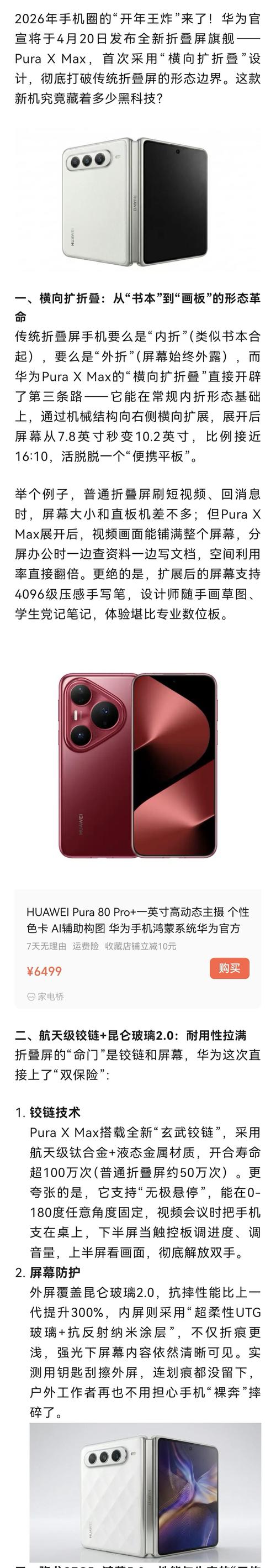 华为联合凯盛科技共同发明专利,折叠屏新物种来袭!华为Pura X Max首创横向扩折叠,4月20日发布。