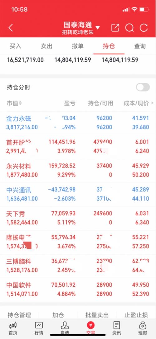 手上持股: 1:$卧龙电驱(SH600580)$(10%) 2:$天下秀(SH600556)$(5%) 看大盘五分钟线图,这是出了一天的货?也就是说前面涨的趋势大票今天基本是被做空了。和恒生的走势一模一样。 每天的坑都太多,涨的那些根本没办法弥补跌的。今天算普涨吧,好的时候4000+涨。但大盘走成这样,不用想都是很多冲高回落,假阳真阴。当天真有赚钱效应的也仅一小部分,像医药,也是一些调整很久的板块...