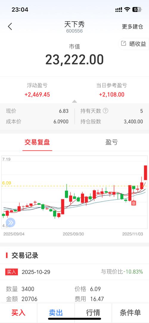 $天下秀(SH600556)$2014年到2023年陆陆续续亏损几百个,并欠下巨额债务,跟家人坦白之后自认为悟出了人生之道,上个月开始建仓,本金2万,开启我的实盘记录,这是我开仓之后的第一个涨停记录一下。
