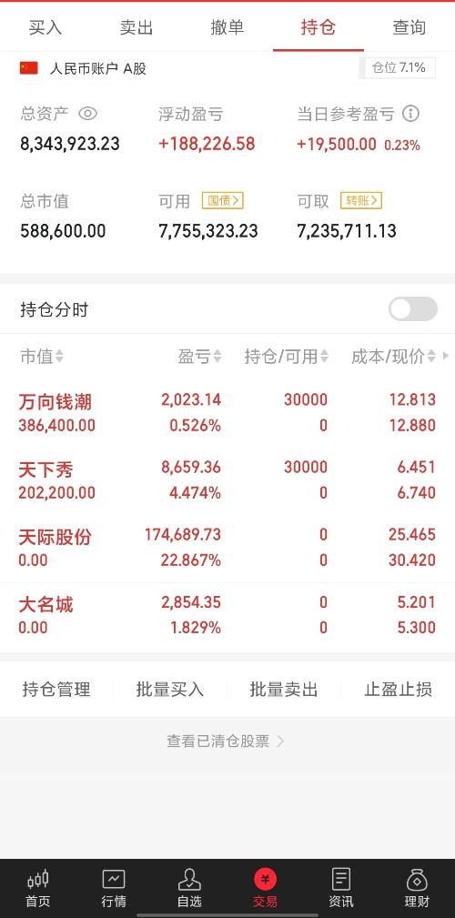 最新个人操作笔记:鸡哥开启实战之旅: 今日卖出:$天际股份(SZ002759)$大名城 今日上车:$天下秀(SH600556)$ $万向钱潮(SZ000559)$ 今日持仓: 特别声明:我开实盘的目的主要是为了记录我对A股走势的思考和研判,并用于记录我自己的操作笔记,是我积累股票投资知识和反省操作失误的一个平台,绝不是读者朋友买卖股票的依据和理由,不具备投资建议,据此操作,需自行承担投资后果,股市...