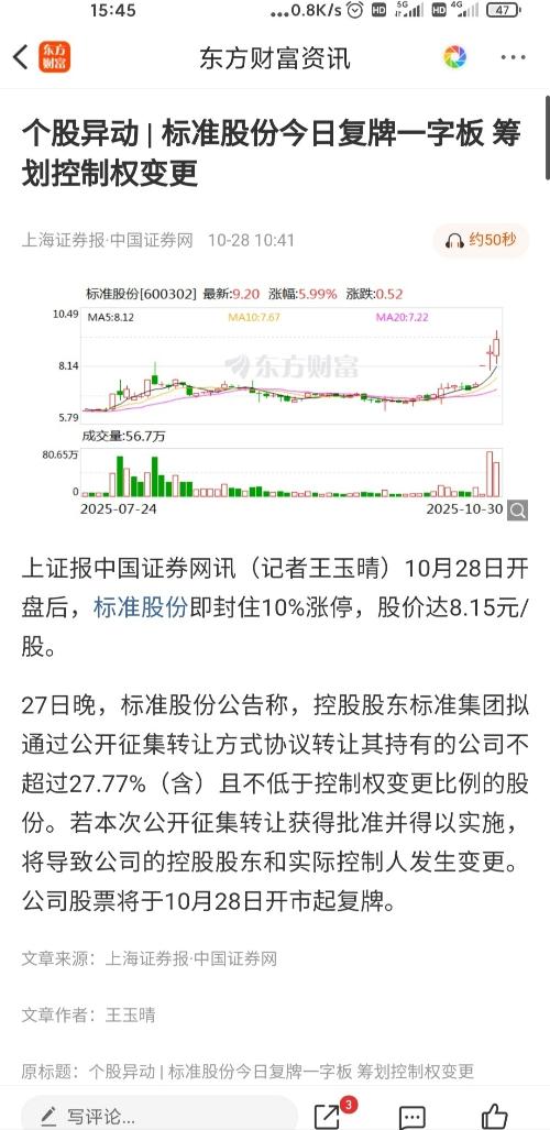 标准股份,已经公告:马上就要重组!最明确的重组股,盘小质优,起码翻五倍$天下秀(SH600556)$$百合花(SH603823)$评论2 -