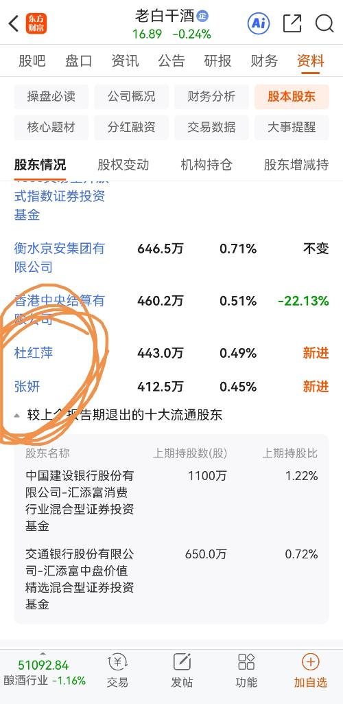 $老白干酒(SH600559)$哈哈哈,这两个散户补仓都补成十大流通股东了,哈哈哈哈。