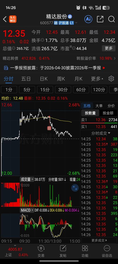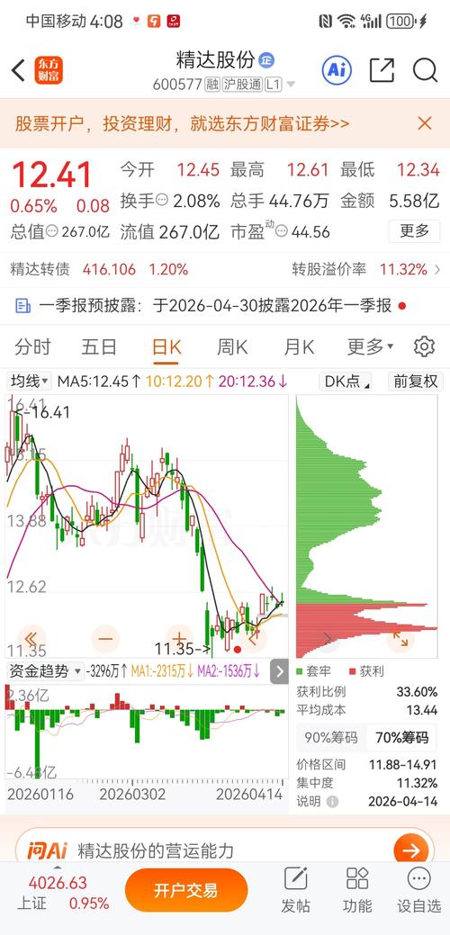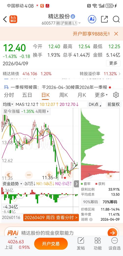 $精达股份(SH600577)$ 练都不要了,大盘4月8日3995点,这货12.58元。。。大盘今天4026点,这货12.41元,太踏马飞舞了。。练都不要了