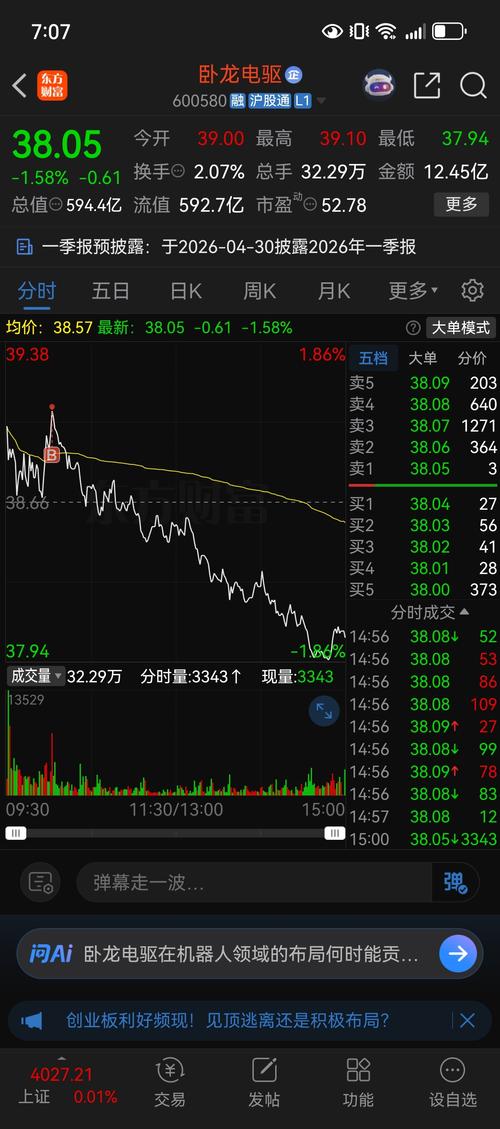 $卧龙电驱(SH600580)$尾盘挂38.07竟然没卖掉,请问明天怎么办,求大神给个建议