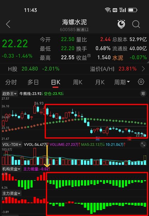 $海螺水泥(SH600585)$ #投资随笔#为什么就是不涨啊,大资金都不认同,资金只出不进,它就不停地跌,跟业绩有关系吗?看懂这张图就会给你答案!什么时候企稳?大资金进来托底才行,红柱信号一出就是买点,坚决不做韭菜!