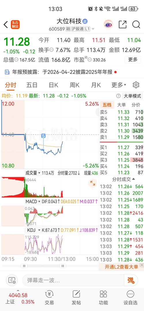 $大位科技(SH600589)$无聊的一天