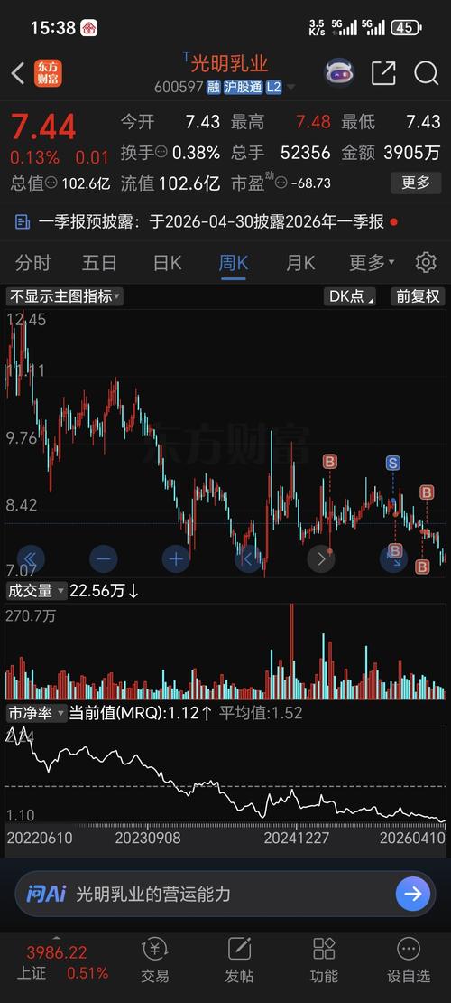 $光明乳业(SH600597)$2024年9月23日上证收盘是2749他的收盘价是7.58 今天上证是3966这货是7.43