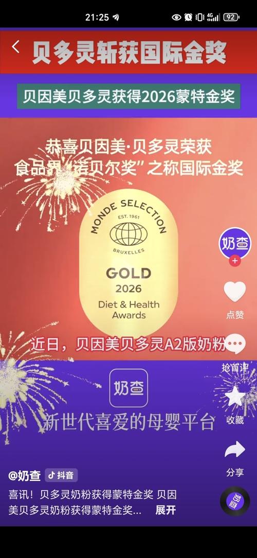 $光明乳业(SH600597)$光明乳业pk 《贝因美旗下品牌“贝多灵”荣获2026年蒙特奖金奖》该奖项被誉为“食品界的诺贝尔奖”,由创立于1961年的国际蒙特奖(MondeSelection)颁发,总部位于比利时 布鲁塞尔,是全球历史最悠久、权威性最高的食品质量评鉴机构之一。 贝多灵品牌背景 贝多灵是贝因美集团专为0-3岁婴幼儿研发的配方奶粉品牌,2023年通过新国标第二次配方注册。其核心配方包...