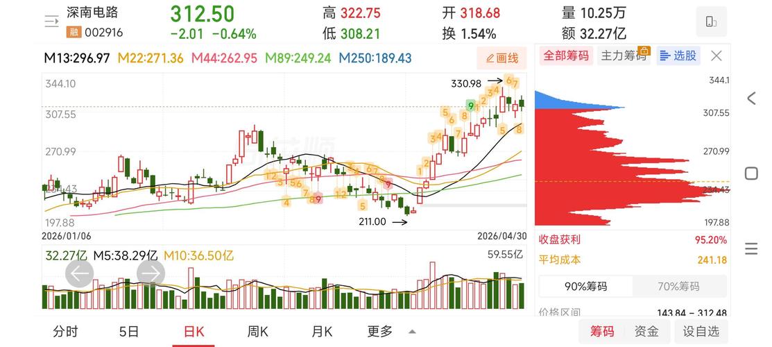 深南电路今天收在312.50,跌0.64%。这票今天整体属于正常震荡,没有明显走强,也没有明显走坏。我们买它,主要不是看一两天的短线弹性,而是看PCB主线后面会不会从胜宏、景旺这些高弹性票,扩散到行业核心票。深南电路的好处是位置相对没有那么极端,走法也更偏趋势和机构资金。今天虽然小跌,但依然守在310附近,这个位置很重要。只要310不破,整体结构就还能看。后面如果节后重新站上320,说明资金开始回...