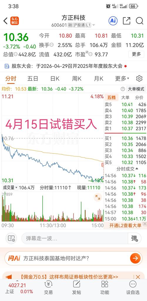 $方正科技(SH600601)$10.38争取一下