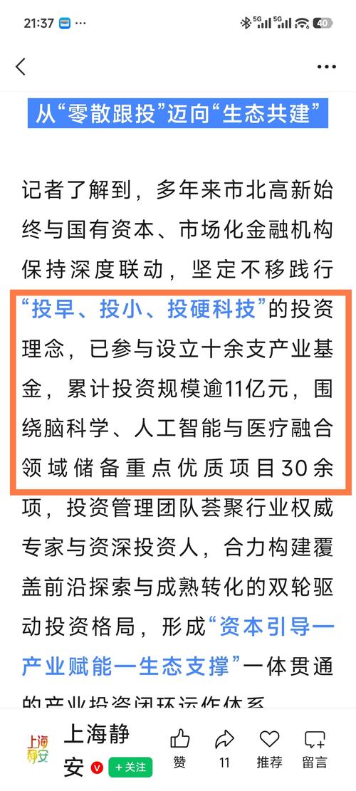- 关键进展解读 1.规模与数量双提升:从8只基金、6.6亿规模,升级为十余支基金、超11亿总投资,说明市北高新的产业投资布局在持续加码,资金投入和项目覆盖都有明显扩张。 2.投资方向更聚焦前沿:明确围绕脑科学、人工智能与医疗融合领域储备30余个重点项目,相比此前泛化的硬科技、集成电路等方向,赛道更精准,聚焦高成长、高壁垒的前沿交叉领域。 3.投资模式升级:从“零散跟投”迈向“生态共建”,形成“资本引导—产业赋能—生态支撑”的闭环体系,说明公司从单纯的财务投资,升级为深度参与产业生态建设,赋能能力和投资价值进一步提升。 4.团队与格局完善:投资管理团队汇聚行业权威专家与资深投资人,构建了覆盖前沿探索与成熟转化的双轮驱动格局,投资体系更成熟、抗风险能力更强。