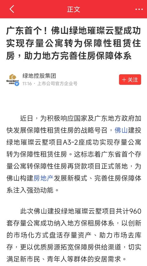 广东首个!佛山绿地璀璨云墅成功实现存量公寓转为保障性租赁住房,助力地方完善住房保障体系