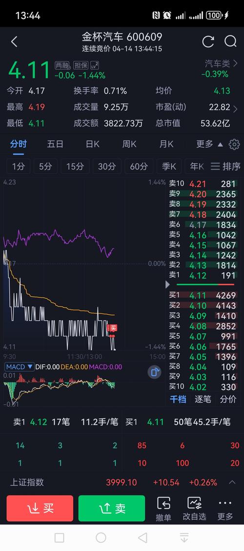 $金杯汽车(SH600609)$目前唯一的好消息,没有破4.05