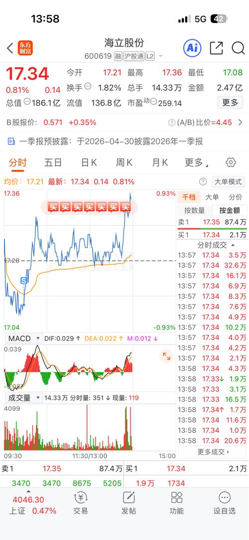 $海立股份(SH600619)$这支票今天可以进了,今天进,明天出,大概有三四个点的利润