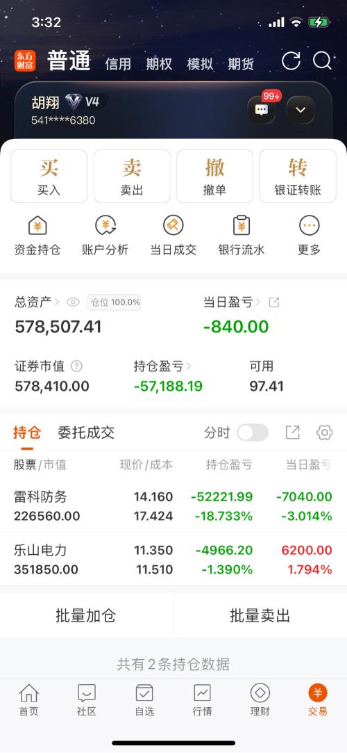 $雷科防务(SZ002413)$ $乐山电力(SH600644)$ $东方明珠(SH600637)$ 今天好烦躁,早盘乐山和雷科一起涨,最多盈利13000元,尾盘没看惊呆了,今天不是乐山电力对冲雷科的亏损,不然又是亏码的一天! 雷科防务两日接近8个点,更有小伙伴两天高位买入下来15个点,小胡套一个月快18个点了,这真的就是杀跌出货,短期起不来了,不安慰任何人,看盘面就是没有行情,拿不住难受只能割肉...