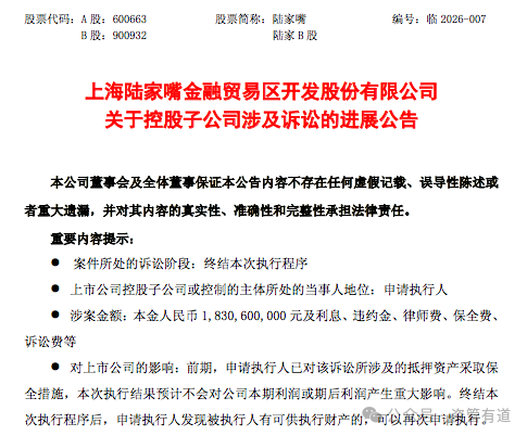 “四年前打擦边球,底层楼盘难处置。” 3月18日晚间,陆家嘴(600663.SH)发布公告,披露了一则关乎巨额债权的关键进展:其控股子公司陆家嘴国际信托一笔本金18.306亿元的债权,被上海金融法院依法裁定终结本次执行程序。 这起看似简单的执行停滞事件,背后牵扯着四年前的违规操作、房企债务危机等多重隐情,而当初打擦边球的决策,如今也彻底沦为了债权难以回款的“祸根”。 01 溯源:擦边球操作,埋下债...