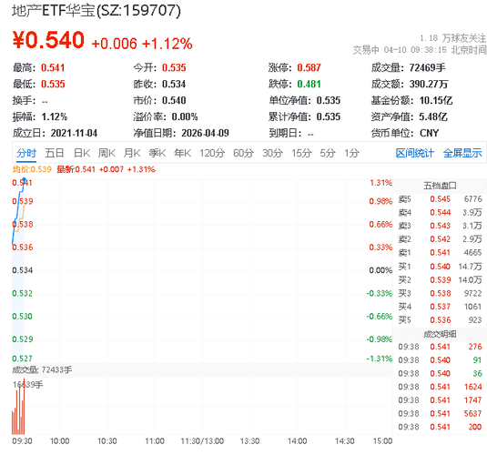 华宝地产ETF上扬1.12% 陆家嘴领涨1.71% 优质央国企布局机遇显现
