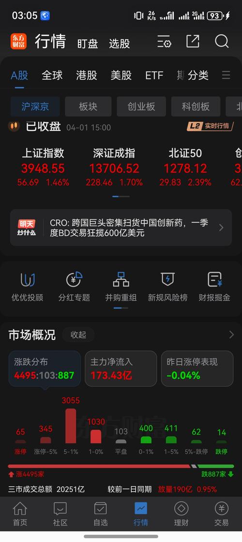 朋友们,记得点赞关注再往下看。感谢大家的支持 三月跌得有多惨,四月第一天就反弹有多猛。今天三大指数集体飘红,沪指涨1.46%收3948.55,深成指涨1.70%收13706.52,创业板指涨1.96%收3247.52。沪深两市合计成交约2.01万亿,比上个交易日放量不少。 看上去是一片欣欣向荣,但别忘了,三月份沪指累计跌了超6%,从4100点上方一路跌到3891点,今天涨的这点,也不过刚到3.20...