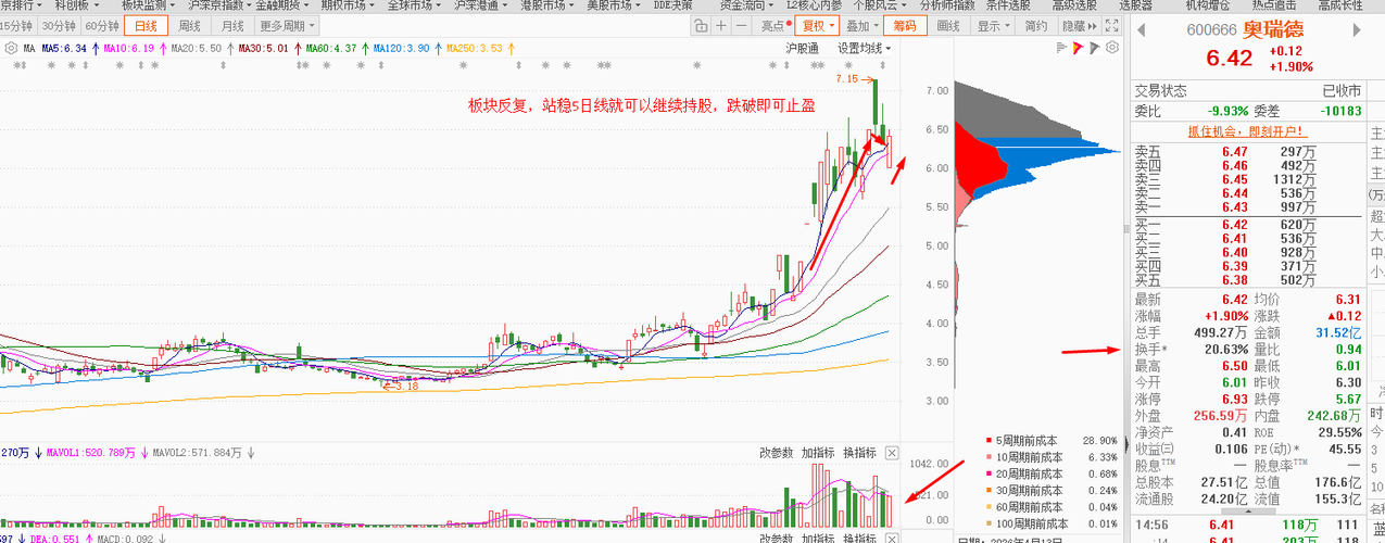 $奥瑞德(SH600666)$说实话,今天是卖点,高位下跌中的红盘,可能很多人明天会进,只想说别上头