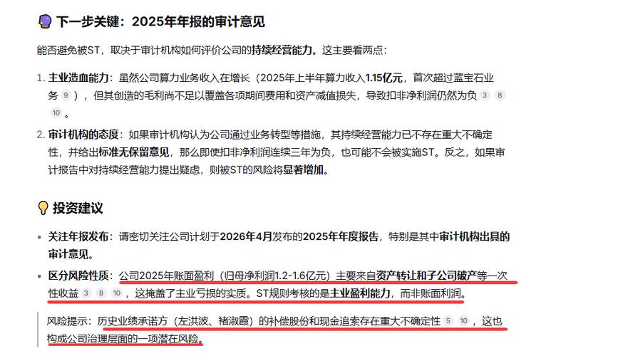公司2025年账面盈利(归母净利润1.2-1.6亿元)主要来自资产转让和子公司破产等一次性收益,这掩盖了主业亏损的实质。ST规则考核的是主业盈利能力,而非账面利润。548 -